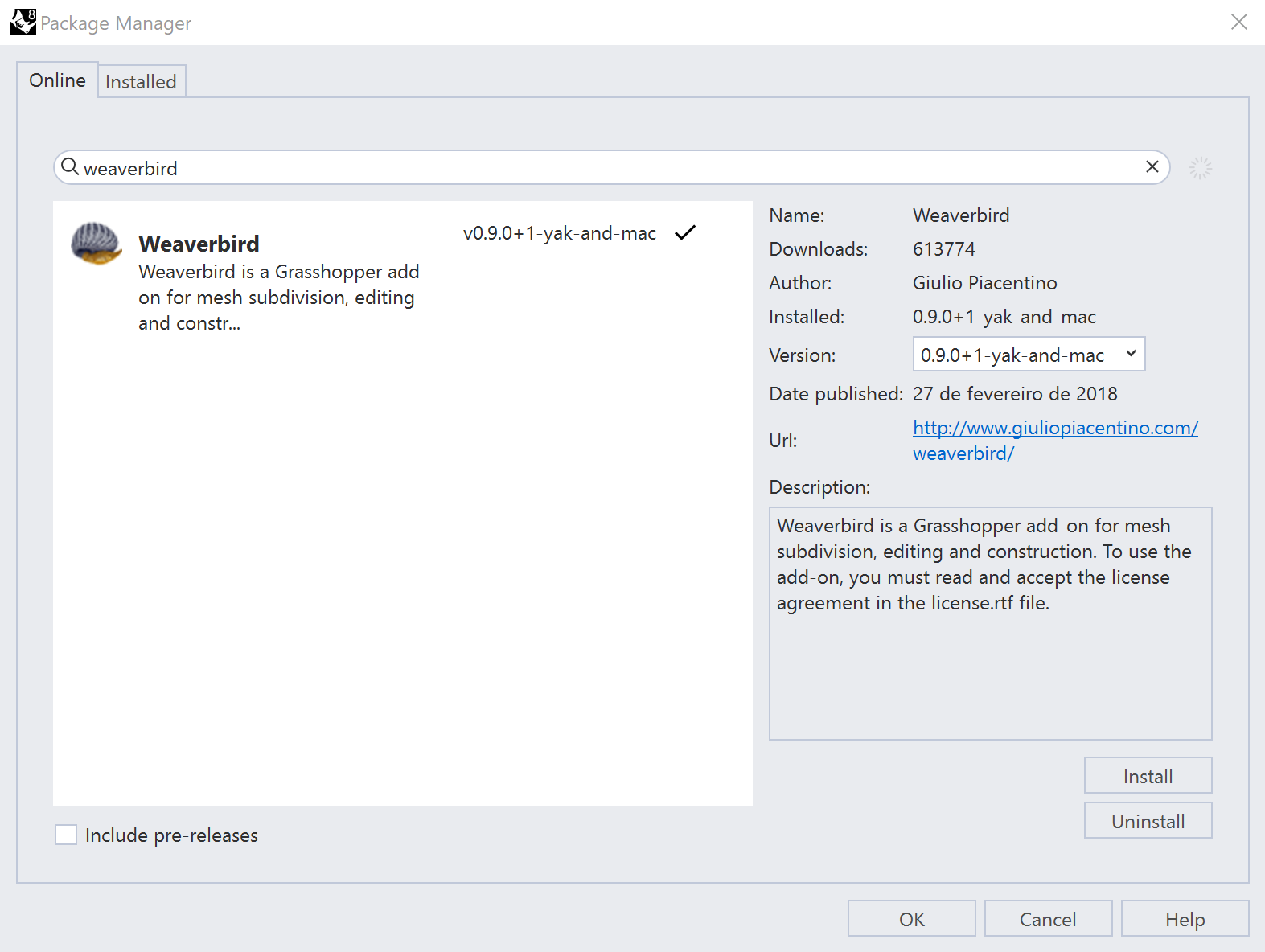 - Search for Weaverbird, and install