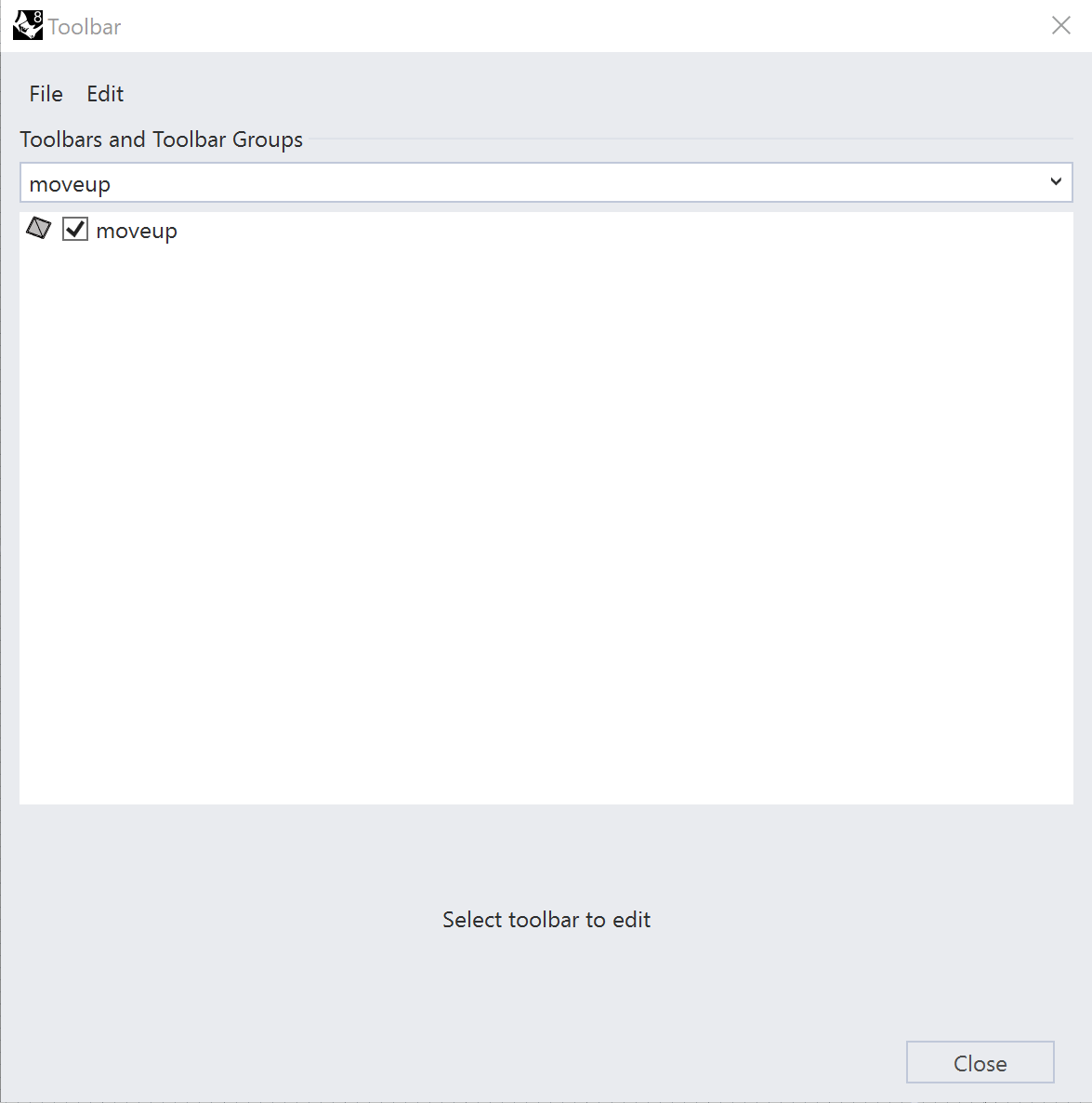 - Select moveup from the Toolbars and Toolbar Groups selector